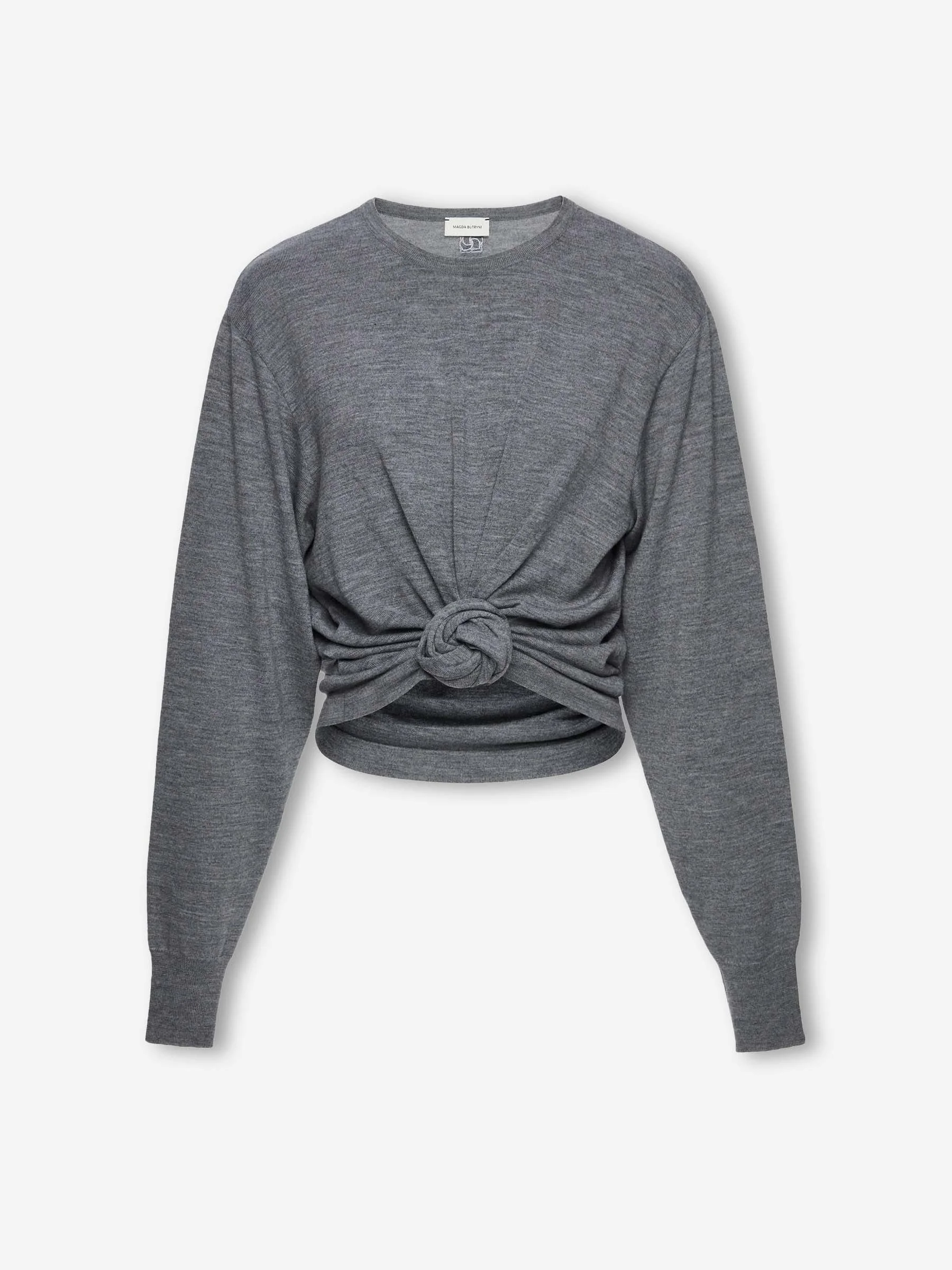 SKU: 711-003435 01 BRAND ID: 351426 's jersey By Magda Butrym • Made from wool knit • Round neck • Gathered and central knot • Detachable shoulder pads • Embroidered logo on the back yoke. • Composition: 100% wool • Made in: Italy