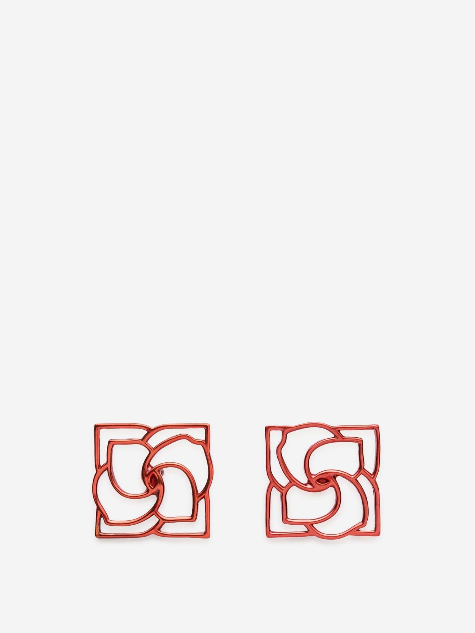 SKU: 850-001958 01 BRAND ID: 787525 Earrings by Magda Butrym • Made of hypoallergenic plated brass. • Minimalist square shape • Logo in an intricate openwork design Made in Espana 1cm wide, 1cm long 100% Brass