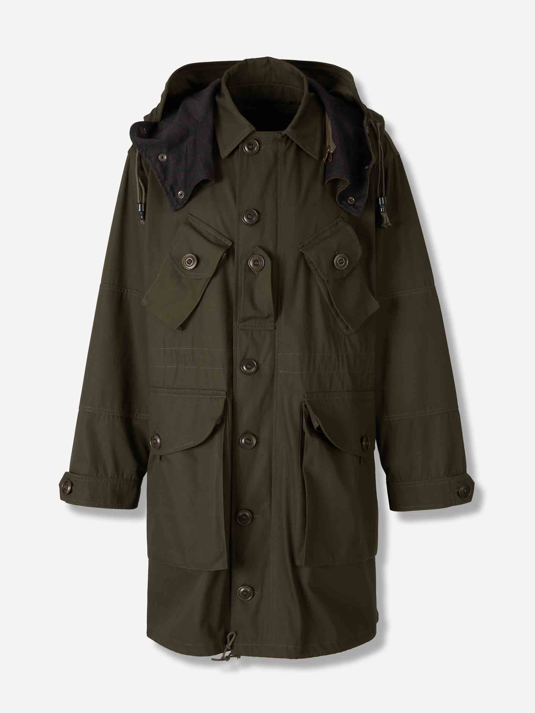 SKU: 512-002676 01 BRAND ID: S50AM0642 Multi Pocket Parka Type of article By Maison Margiela • Multi pockets at the front • Cuffs with button • Made of cotton and polyester fabric • Adjustable waist • Hidden zip front closure with flap and buttons • Trench collar with removable hood Composition: 50% cotton, 50% polyester Italy
