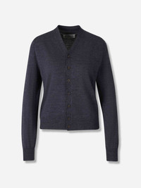 SKU: 713-000355 01 BRAND ID: S51HP0024M13147 Wool Knit Cardigan Cardigan By Maison Margiela • Ribbed finishes at the cuffs and hem • Detail of visible stitching on the back • Relaxed fit • Plain style • Made of wool knit • Front button closure • V-neck Composition: 100% wool Romania