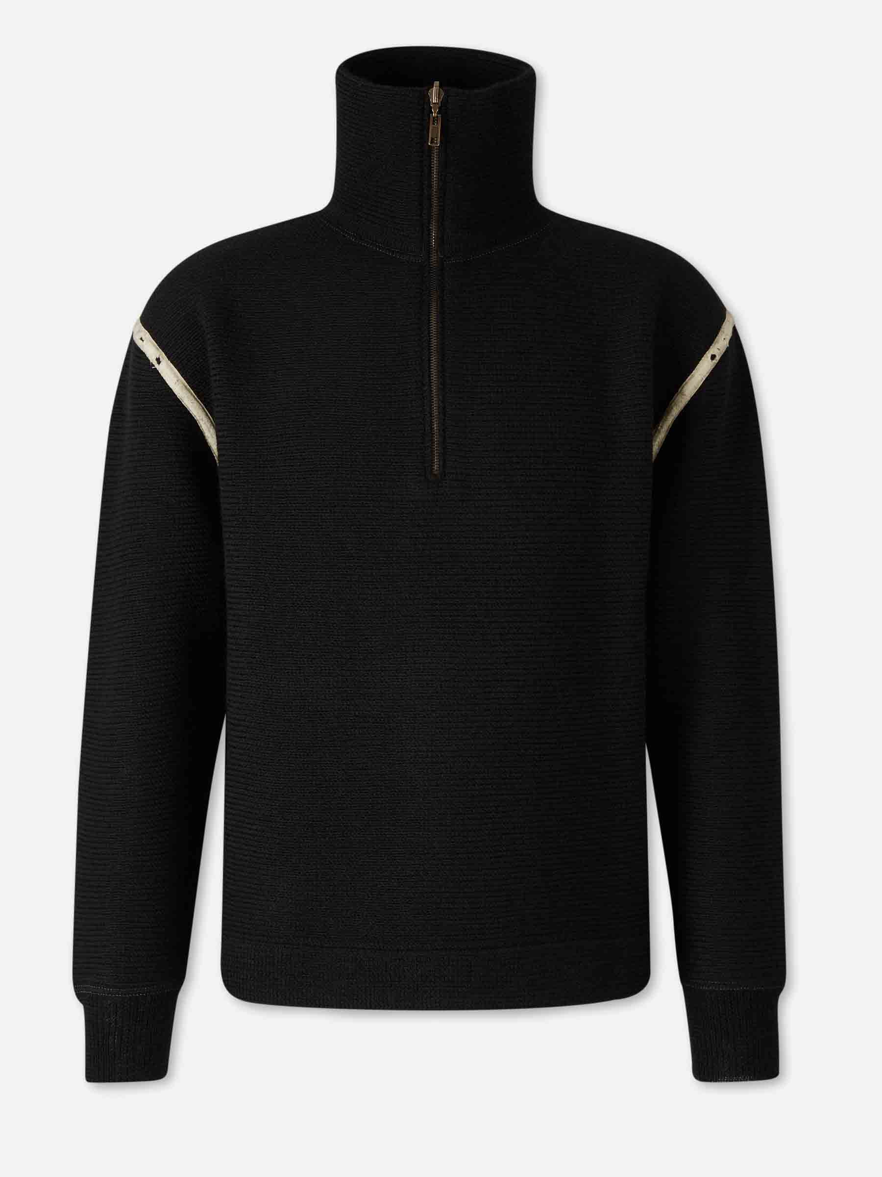 SKU: 542-002494 01 BRAND ID: S67HL0016 Wool Knit Sweater Sweatshirt By Maison Margiela • Ribbed finishes on the cuffs and hem • Regular fit • Knitted in wool • Long sleeves with sewn elbow patches and overlock seams at armholes • Zip closure at neck • High collar Composition: 100% virgin wool Romania