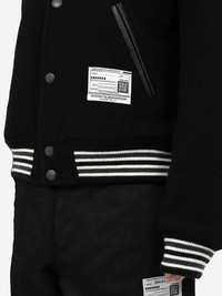 SKU: 512-002718 01 BRAND ID: C15BL012 Bedwin & The MMY Jacket Jacket By Maison Mihara Yasuhiro • Side pockets • Brand logo in collaboration embroidered • Made of wool, polyester, nylon and acrylic melton • Cuffs, hem and collar in ribbed • Front button closure • Bomber collar Composition: 70% wool, 20% polyester, 5% nylon, 5% acrylic Japan