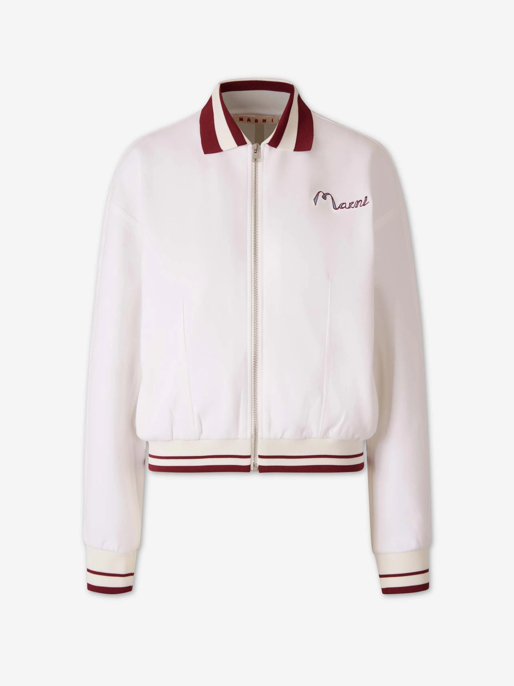 SKU: 715-000234 01 BRAND ID: FLJE0240LSUTC613 sweatshirt By Marni • Relaxed fit • Made from cotton and polyamide fabric • Knitted shirt collar • Front zip closure • Embroidered logo on the front • Ribbed cuffs and hem • Side pockets • Composition: 80% cotton, 20% polyamide • Made in: Portugal