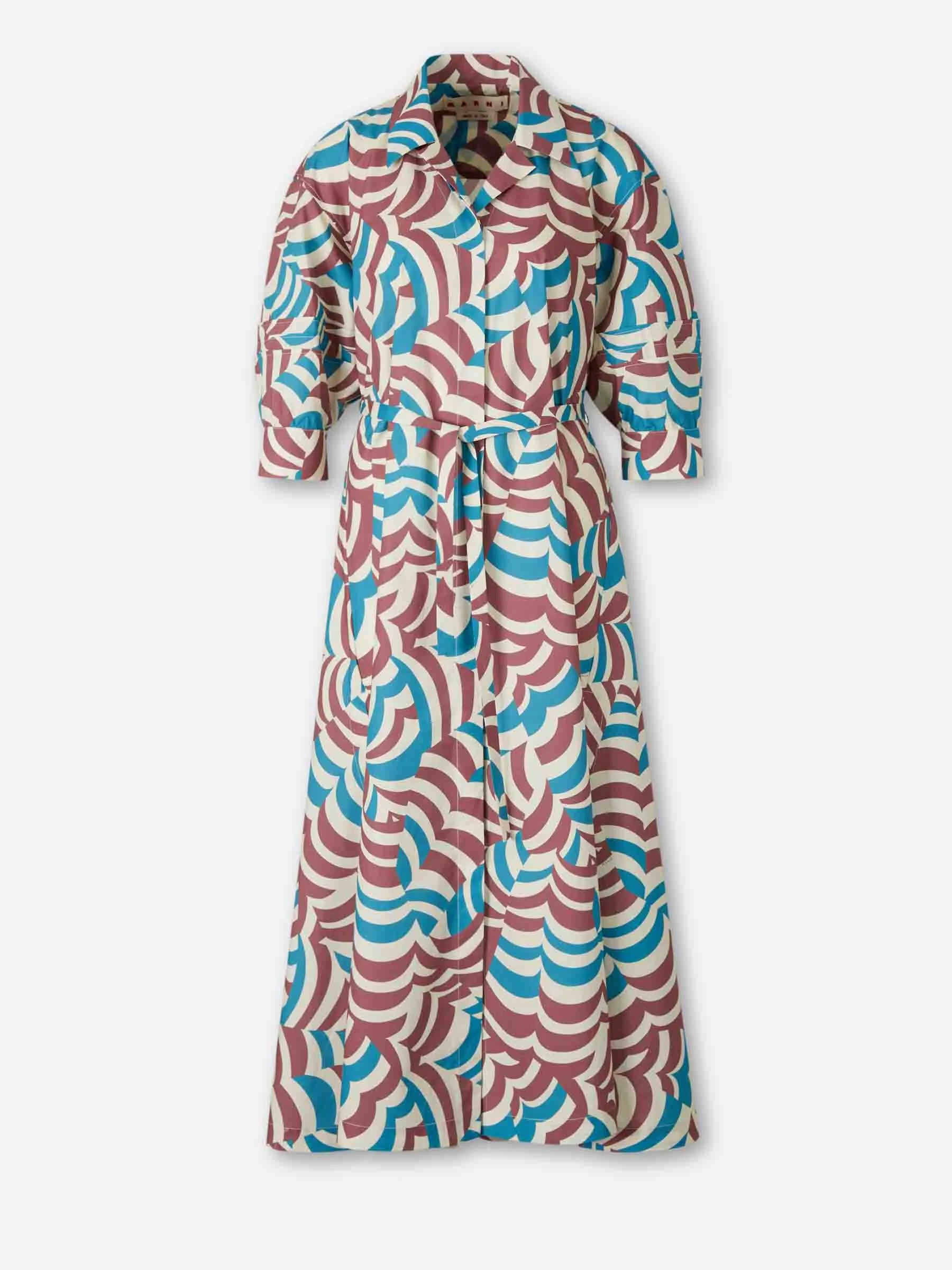 SKU: 721-000743 01 BRAND ID: ABMA1550A1UTC625 Dress By Marni • Midi dress • Regular fit with smooth drape • Made from cotton fabric • Front button closure • Geometric print • Matching belt • Composition: 100% cotton • Made in: Italy