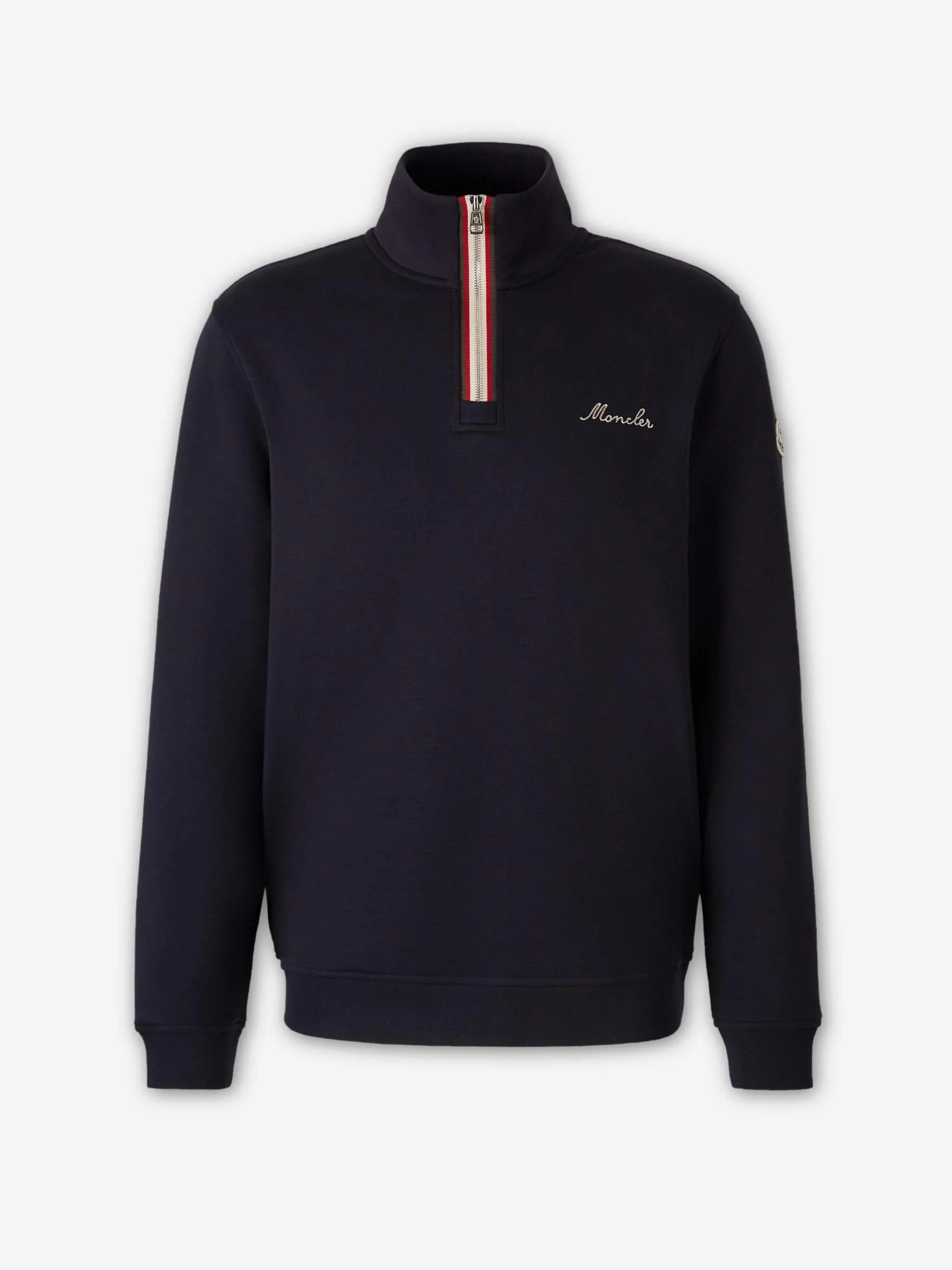 SKU: 545-002050 01 BRAND ID: L10918G0001489A8F sweatshirt By Moncler • Regular fit • Made from a soft cotton and nylon blend • Zipper closure • Turtleneck with tricolor trim • Embroidered logo • Ribbed elastic cuffs and hem • Composition: 87% Cotton, 13% Polyamide • Made in: Turkiye