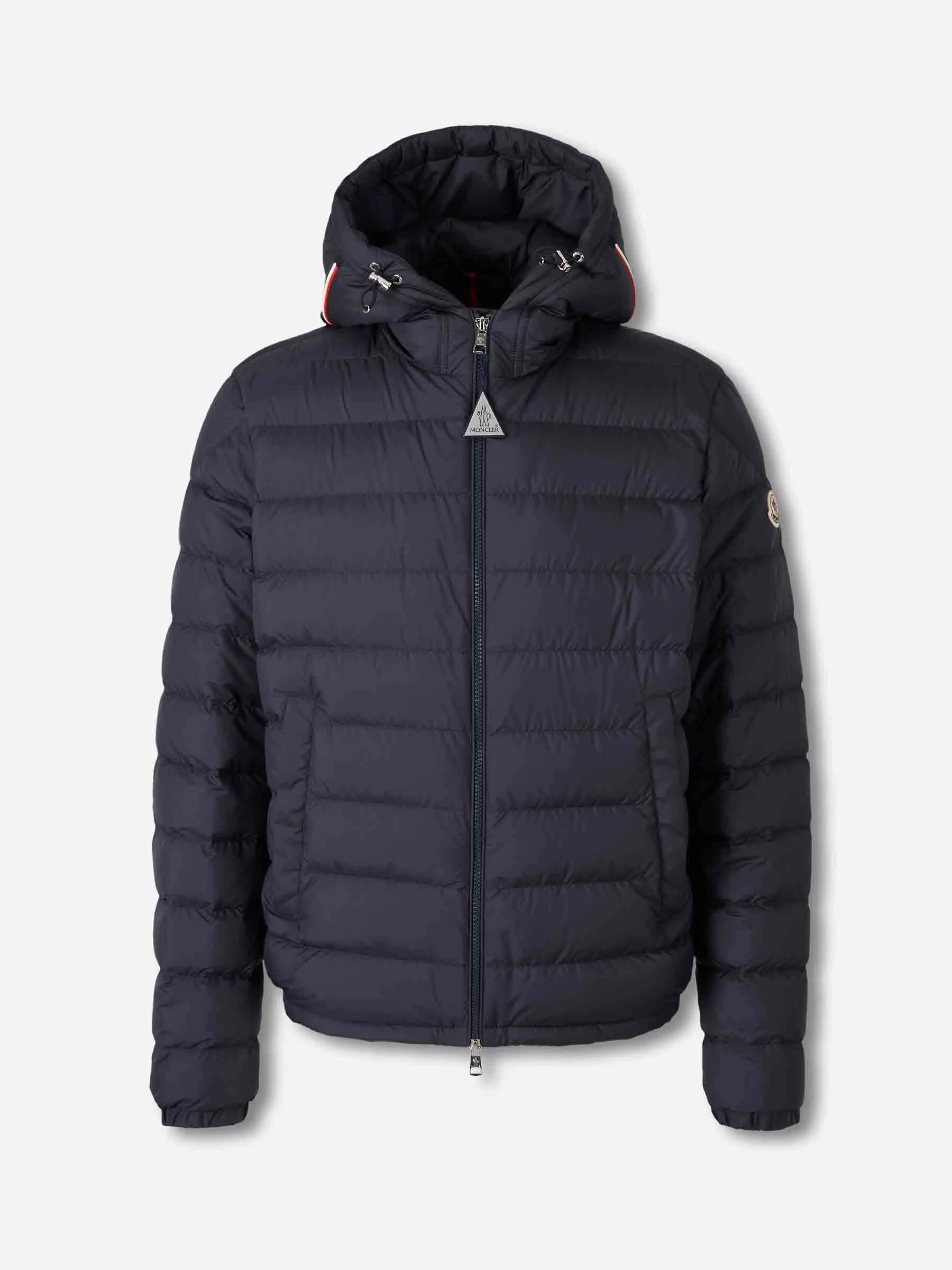 SKU: 512-002797 01 BRAND ID: L10911A00006597X2 Moncler down jacket By Moncler • Pockets with button closure • Lightweight micro-fabric lining • Elasticated cuffs and hem • Made from lightweight micro-fabric and filled with down • Short down jacket • Front zip closure • Adjustable hood with tricolor trim • Composition: 100% polyester • Made in: Armenia