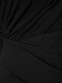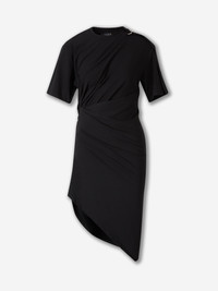 SKU: 731-006097 01 BRAND ID: 25F3RO1620297 Draped Midi Dress Midi dress By Mugler • Round neck • Structured waist design • Side draping details and silver metallic piercings • Fitted • Crafted from high-quality stretch cotton fabric • Midi dress • Short sleeve Composition: 91% cotton, 9% elastane Made in: France