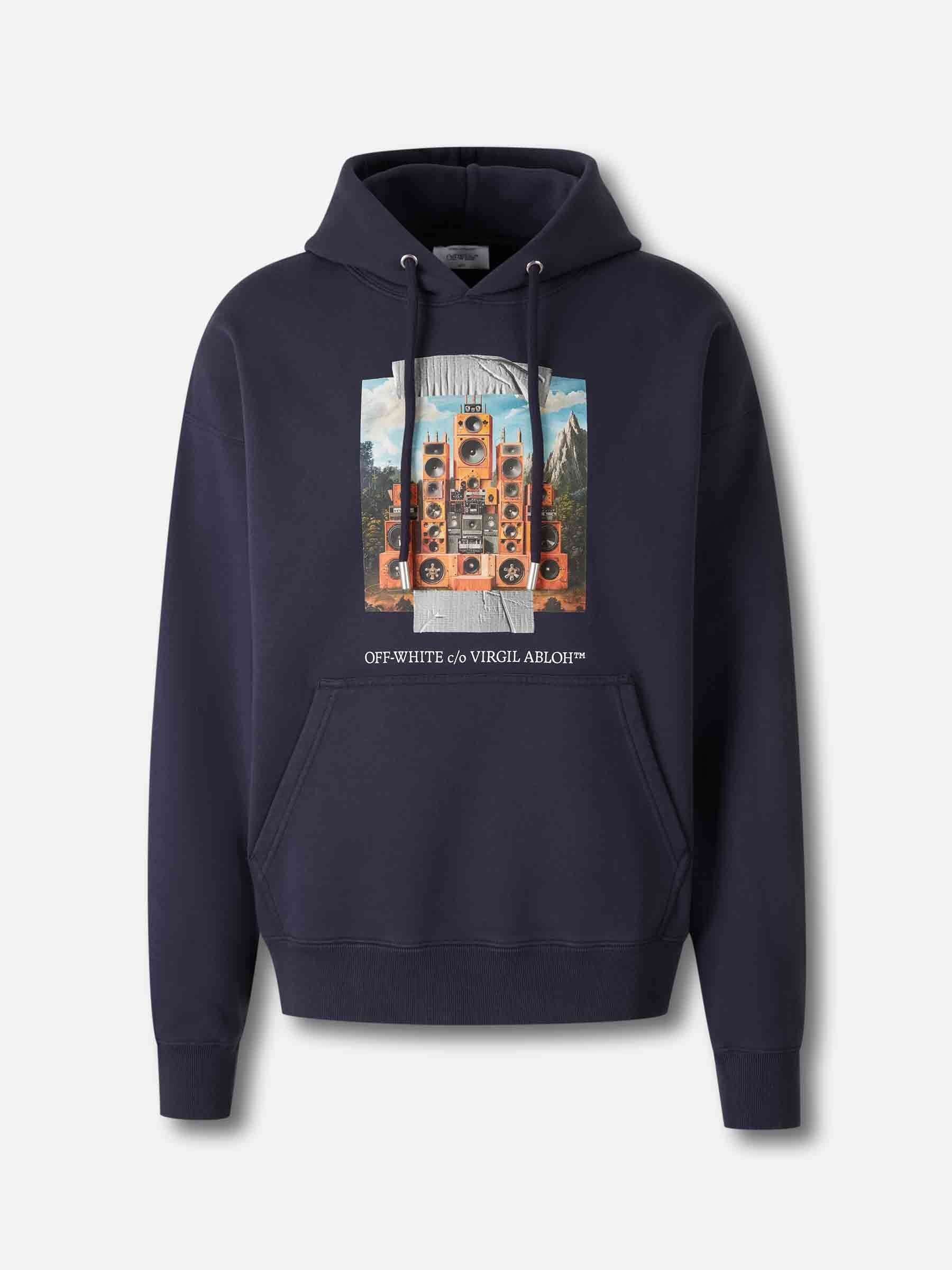 SKU: 545-001908 01 BRAND ID: MBB085F5F0074901 Hoodie Hoodie By Off-White • Ribbed finishes at the cuffs and hem • Front kangaroo pockets • Urban graphic design with logo on the front and back. • Loose fit • Features a distinctive graphic logo on the front, and another graphic with text on the back. • Made from high-quality cotton • Hoodie • No closure • With adjustable hood with drawstrings Composition: 100% cotton. Ribbed knit: 95% cotton, 5% elastane. Portugal