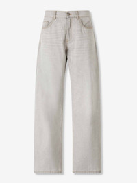 SKU: 522-002968 01 BRAND ID: PMYA049F25DEN001 Curved Logo Loose Jeans Jeans By Palm Angels • Three side pockets and two back pockets • Mid-rise waist with belt loops • Distinctive stitching details and brand label on the back • Relaxed fit • Crafted with high-quality cotton denim • Straight hem • Front zip and button closure Composition: 100% cotton Made in: Italy