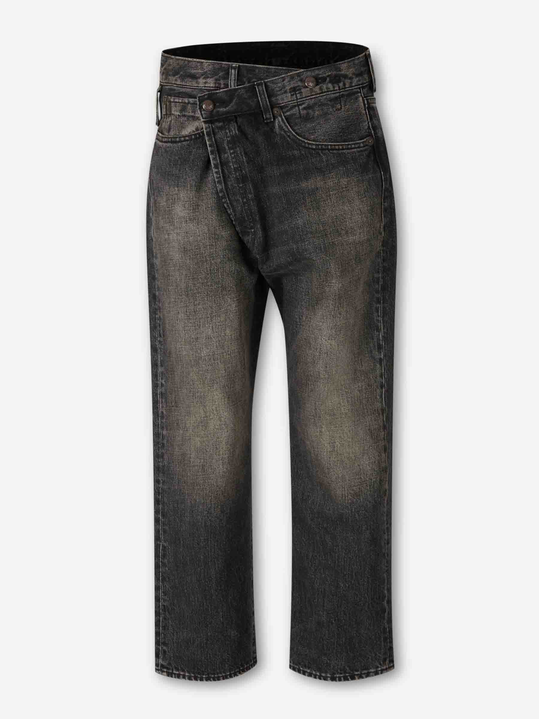 SKU: 763-001801 02 BRAND ID: R13W2048-D352A Wide Crossover Jeans Jeans By R13 • Three front pockets and two back pockets • Mid-rise waist with belt loops • Contrast stitching details • Relaxed fit • Crafted from high-quality cotton denim, offering durability and a flawless finish • Frayed rolled straight hem • Front closure with asymmetrical diagonal metal buttons Composition: 100% cotton Made in: Italy
