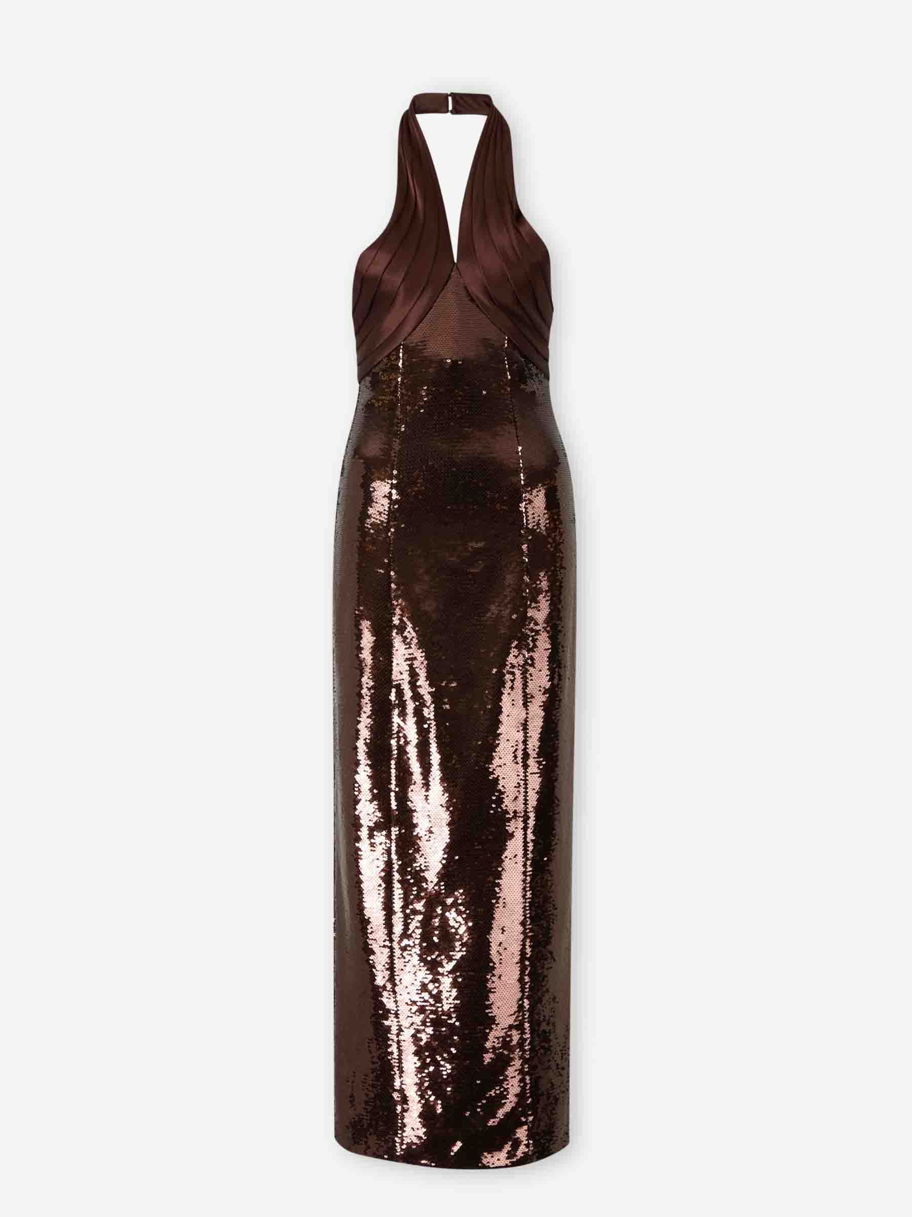 SKU: 721-000542 01 BRAND ID: R-PF25-11626-17 Maxi Dress Tamra Maxi dress By Retrofete • Back opening • Lined interior • Fitted • Made from sequin fabric • Maxi dress • Hidden back zipper closure Composition: 73% acetate, 27% polyester China