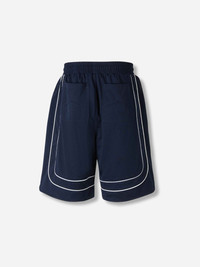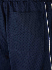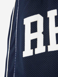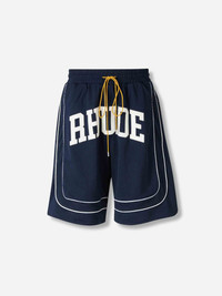SKU: 523-001189 01 BRAND ID: RHFW25SH01041 Collegiate Logo Shorts Shorts By Rhude • Elastic waistband • White piping • Regular fit • Made of polyester mesh • Sewn logo on the front • Drawstring closure Composition: 100% polyester Bangladesh