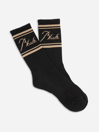 SKU: 642-000561 01 BRAND ID: RHPS26SO02750 socks By Rhude • Made from stretch cotton knit • Jacquard logo • ribbed knit • Composition: 80% cotton, 12% polyester, 8% elastane • Made in: USA