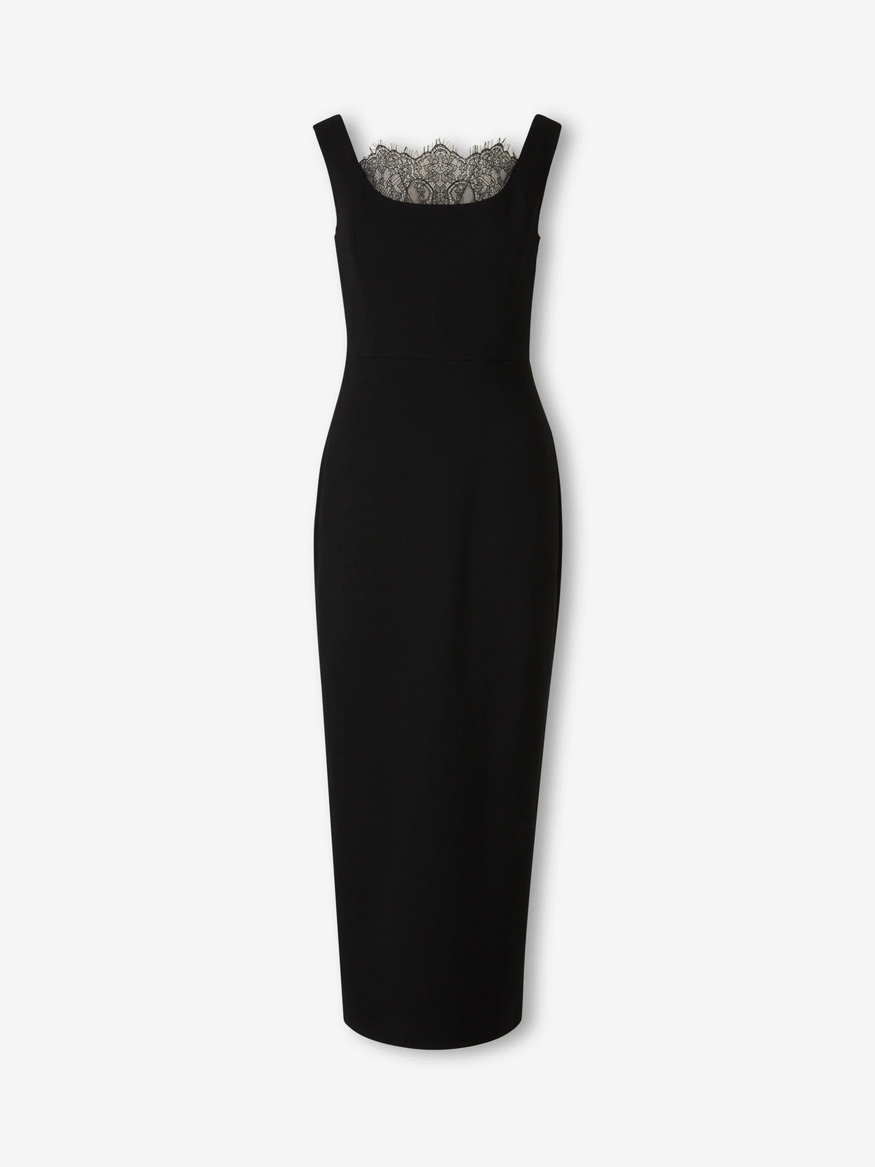 SKU: 721-000744 01 BRAND ID: RM-AW25-026M-WC Dress By Roland Mouret • Midi dress • Slim fit • Made from wool crepe • Concealed closure via rear zip • Lined interior • Scalloped lace insert • Column skirt • Composition: 100% wool • Made in: United Kingdom
