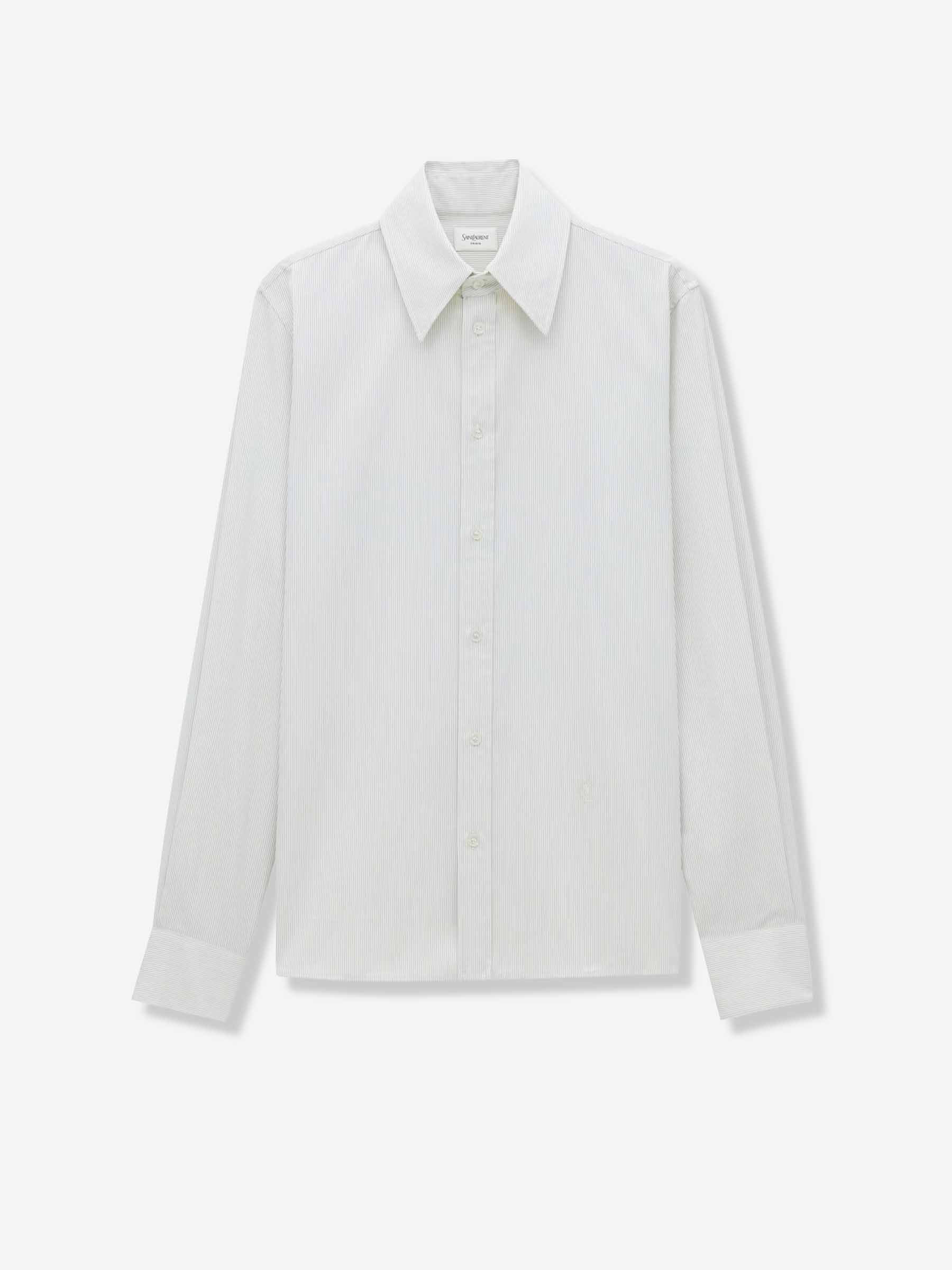 SKU: 531-006590 01 BRAND ID: 848033Y5G30 Cassandre Denim Shirt Shirt By Saint Laurent • Curved hem • Cassandre embroidery on the chest • Tailored fit for an elegant silhouette • Button cuffs • Crafted from high-quality cotton denim • Front button closure • Shirt collar Composition: 100% cotton Made in: Italy