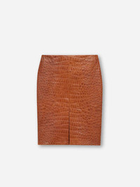 SKU: 750-001699 01 BRAND ID: 842093YCJB2 Crocodile Leather Skirt Midi skirt By Saint Laurent • High waist • Front slit • Fitted pencil style • Crafted in crocodile-embossed calfskin • Midi skirt • Concealed back zip closure Composition: 100% calfskin Made in Italy