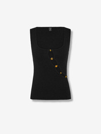 SKU: 782-001815 01 BRAND ID: SIR225-7045 Camiseta Tirantes Chiara Camiseta de SIR • Logo discreto bordado en el pecho • Cortes asimetricos en la parte delantera adornados con cuentas de carey • confeccionada en punto boucle texturizado • Camiseta de tirntes • Cuello redondo 60% Algodon 40% Nailon Italia