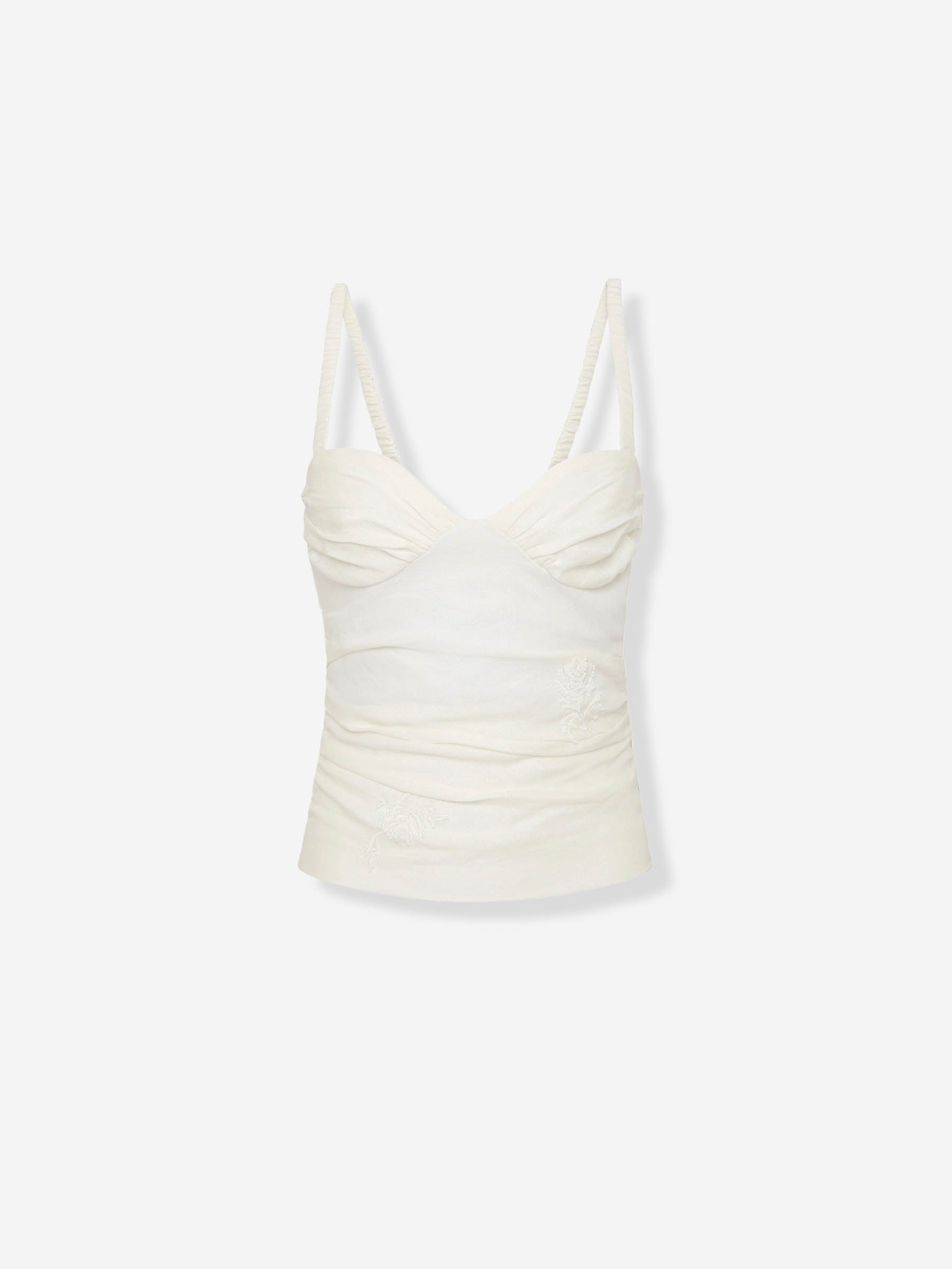 Alessandra gathered bead-embellished embroidered linen camisole White