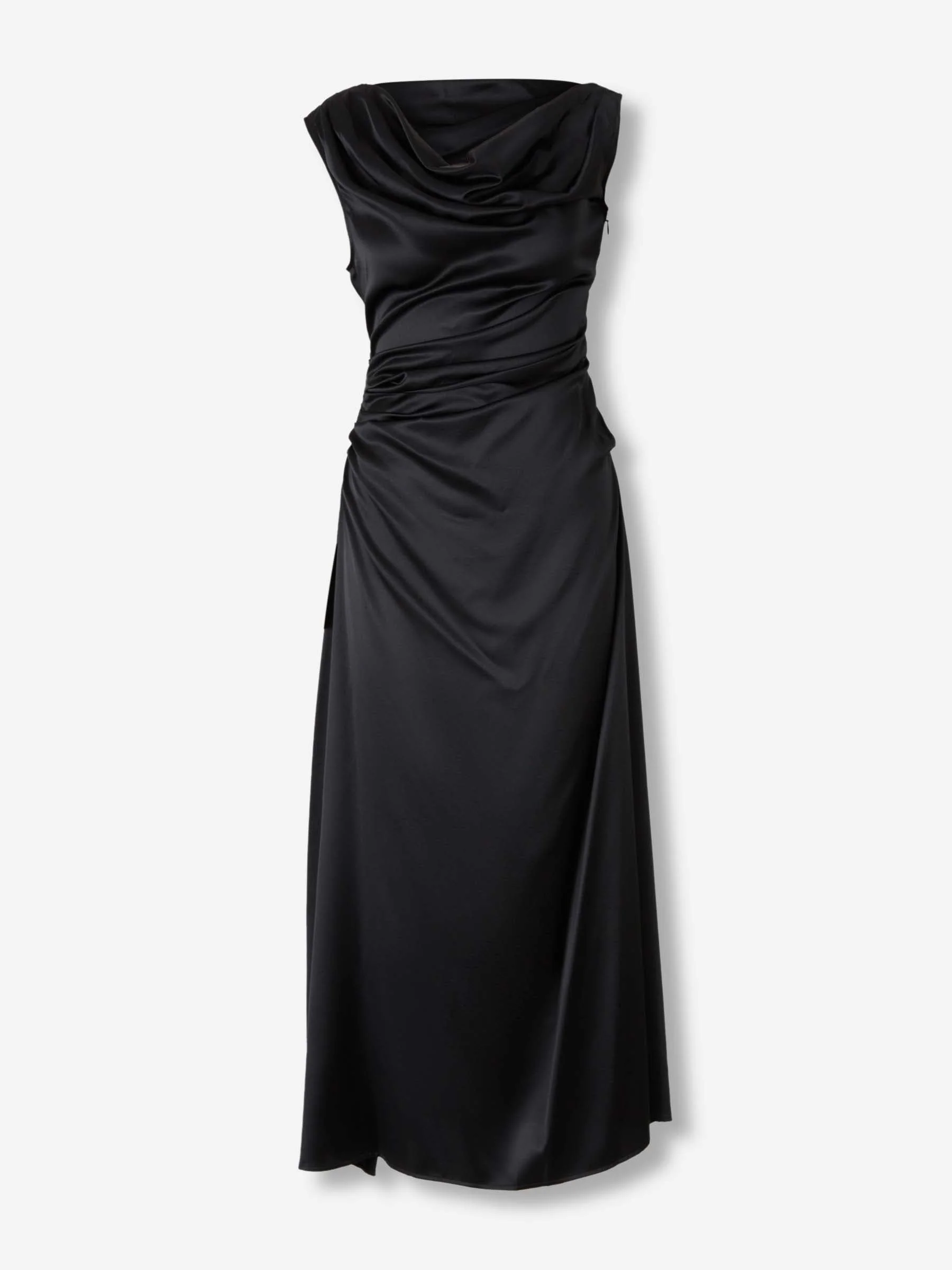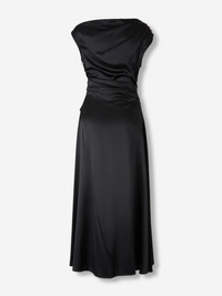 SKU: 721-000644 01 BRAND ID: R25F2223SN Midi Phare Dress Dress By Staud • Fitted waist • Regular fit • Made from satin stretch silk fabric • Midi dress • Draped neckline with exposed shoulders Composition: 93% silk, 7% elastane Italy