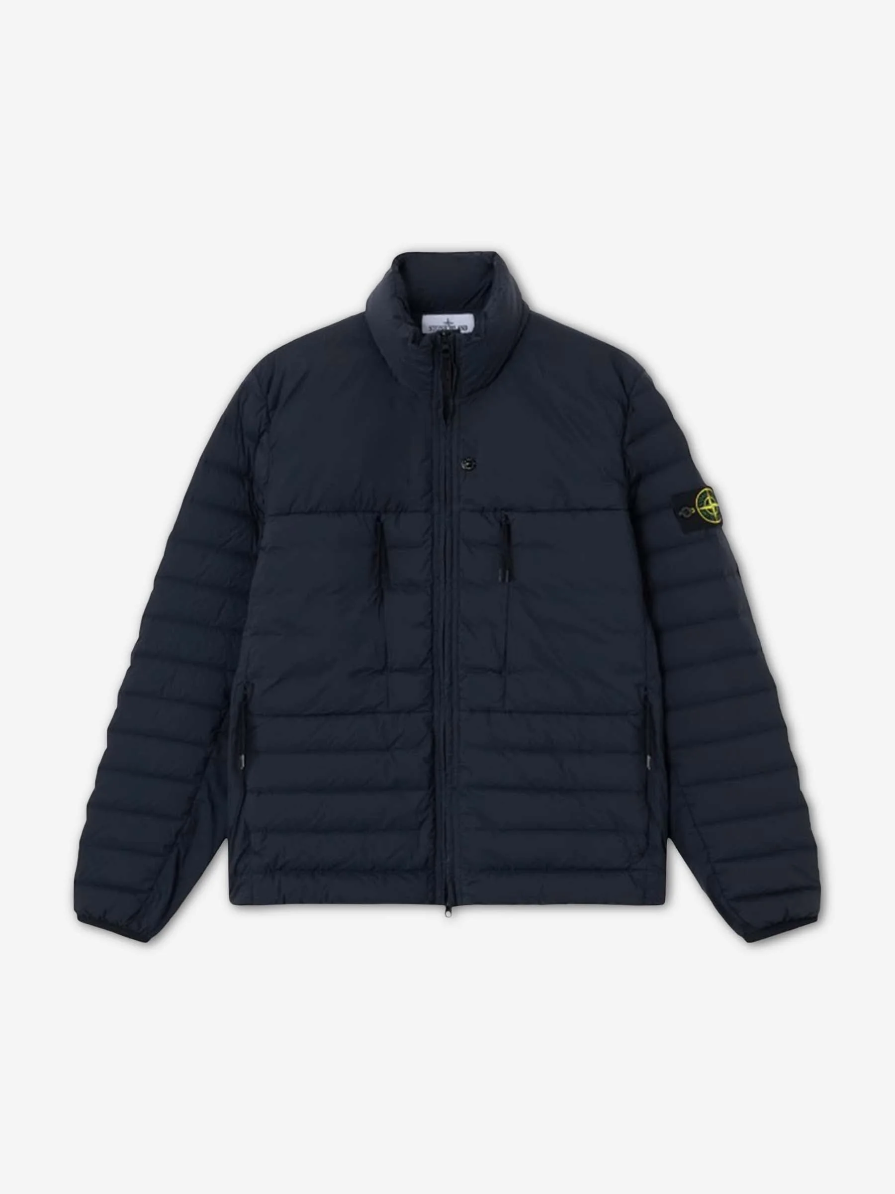 SKU: 512-002786 01 BRAND ID: L1S154100106 Puffer Jacket By Stone Island • Short down jacket • Made from recycled nylon technical fabric with down filling • Padded high collar • Central closure with two-way zip • Adjustable elastic drawstring at the bottom • Stone Island badge on the left sleeve • Vertical hand and chest pockets with concealed zipper and cord pulls • Composition: 86% Polyamide 14% Elastane • Made in: Vietnam