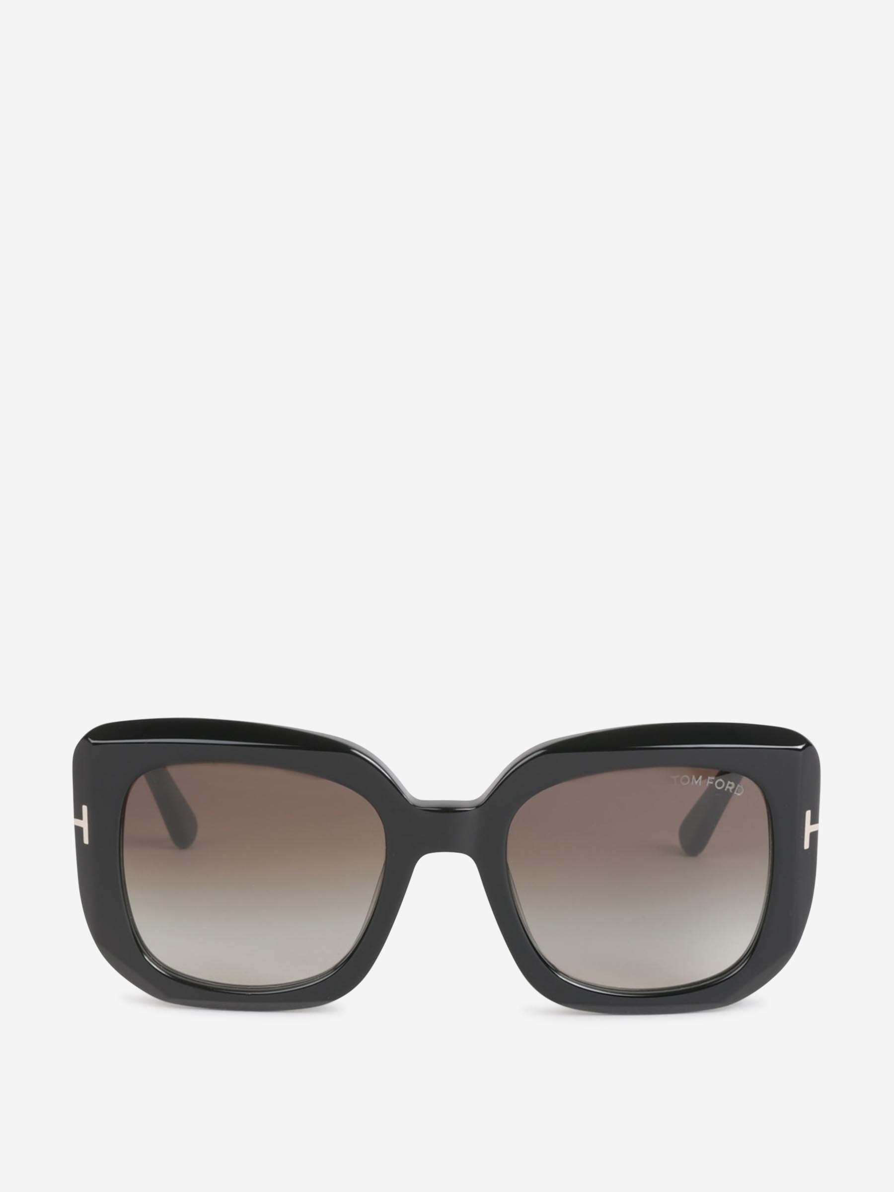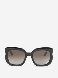 SKU: 860-001187 02 BRAND ID: FT122052 Sunglasses by Tom Ford • Acetate frame • Glossy acetate • Non-polarised lens • Large frame with elegant lines and beveled cuts T logo on the front and temples Made in Italia • They come with a case and a cleaning cloth 100% Acetate