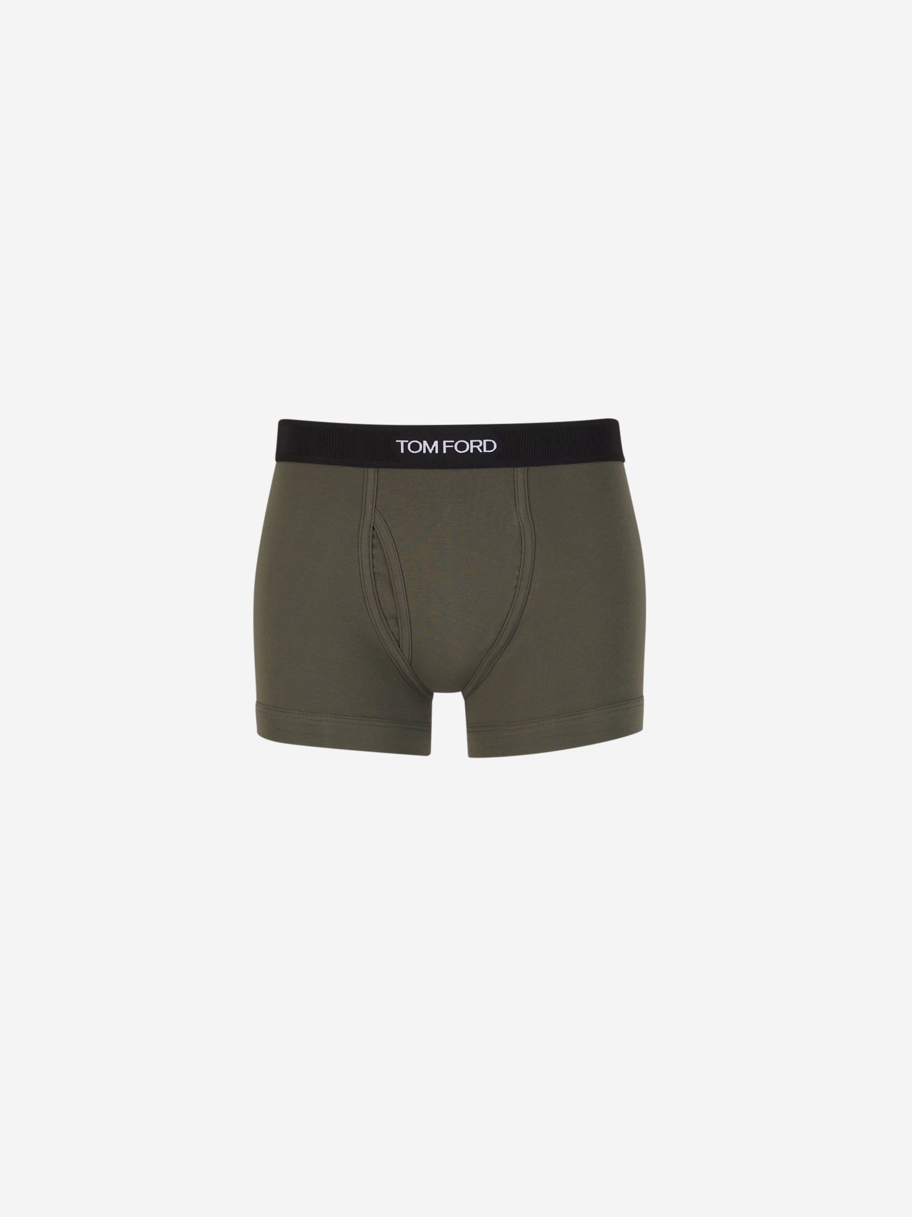 SKU: 652-000099 04 BRAND ID: T4LC31040 Boxer by Tom Ford • Elastic waist with contrast logo • Cotton blend micro knit Model size: M Made in Bosnia y Herzegovina • Debido a la naturaleza de este producto, no se ofreceran cambios ni devoluciones para compras desde fuera de la union europea. 95% Cotton, 5% Elastane