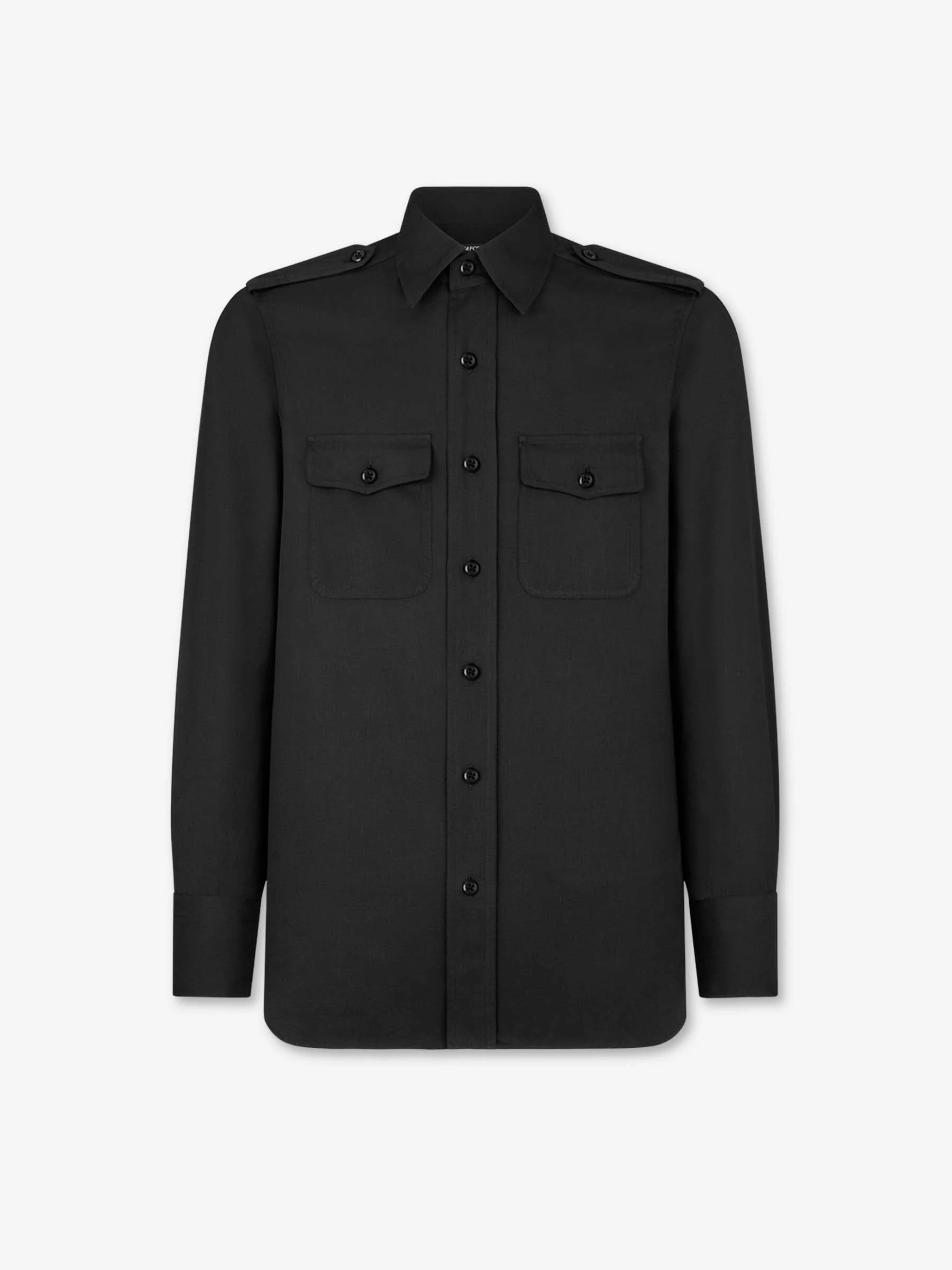 SKU: 513-000067 01 BRAND ID: HME009-FMC238 Shirt By Tom Ford • Features chest pockets • Cuffs with buttons • Made of cotton and silk • Front button closure • Classic collar • Composition: 92% cotton, 8% silk • Made in: Italy
