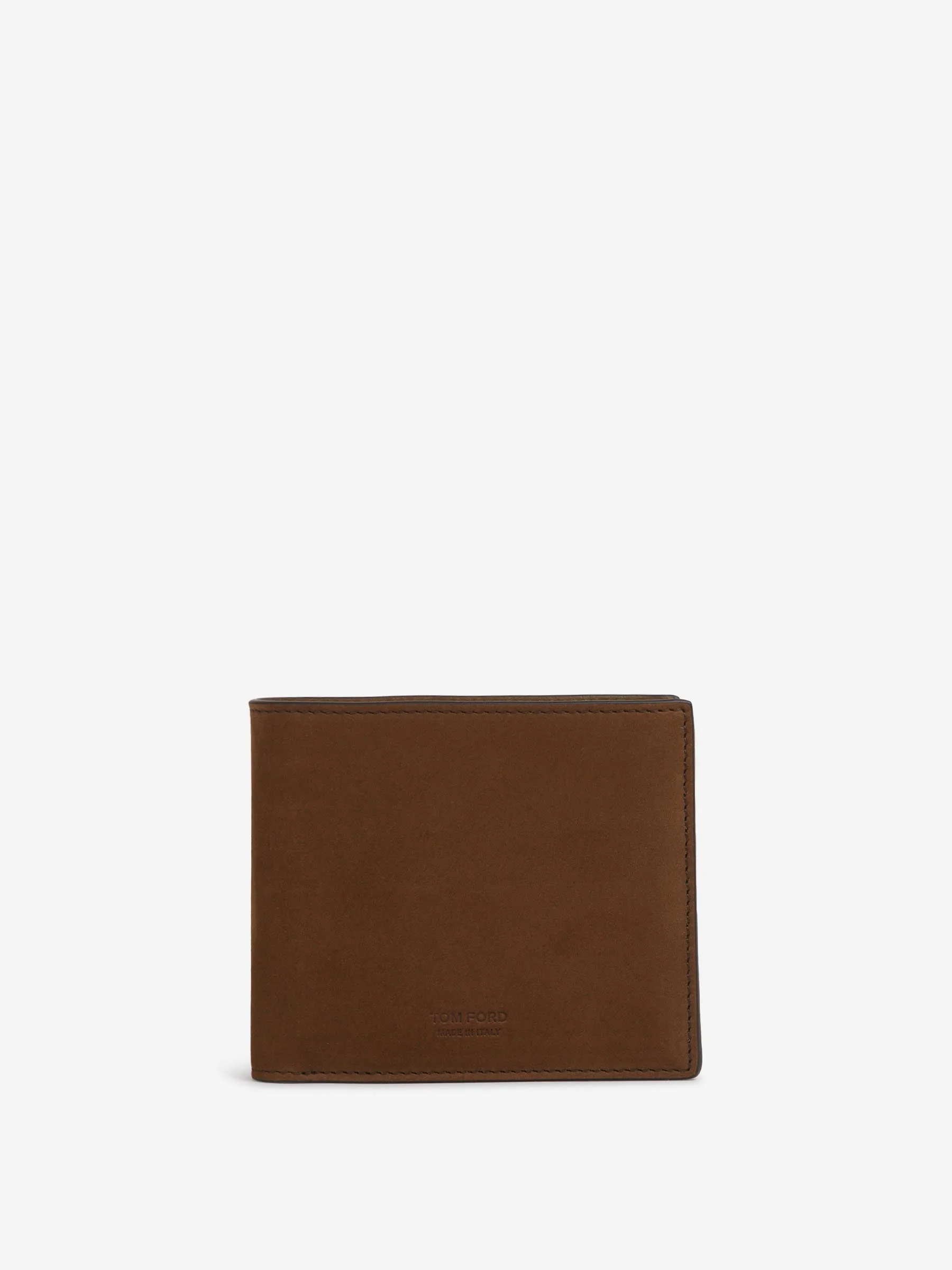 SKU: 691-001553 01 BRAND ID: Y0228-LCL504S wallet By Tom Ford • Foldable style • T-Line Hardware • Made of nubuck leather • Four card slots, one central bill pocket, and a coin compartment • Dimensions 11 x 9.5 x 1 cm • Composition: 100% calfskin • Made in: Italy