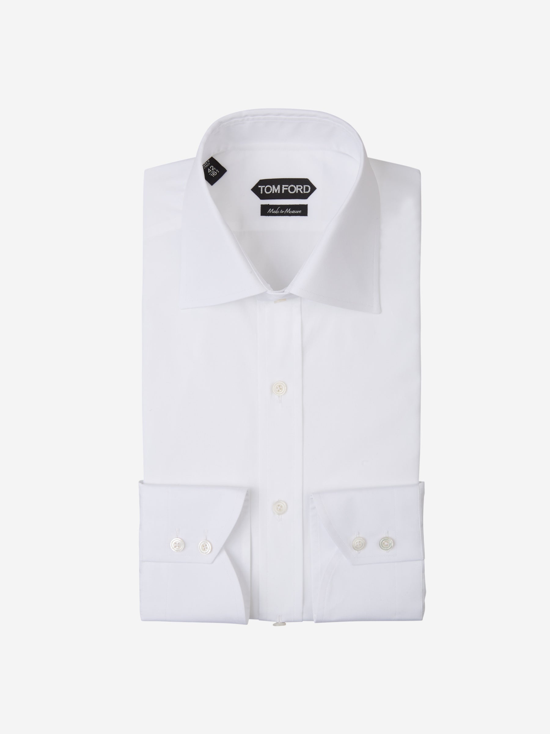 SKU: 401-002617 BRAND ID: 94S1IG Shirt by Tom Ford • Formal • Classic fit • Cotton poplin • White color • Italian collar • Removable collar stiffeners • Consists of a placket • Mother of pearl buttons • Rounded cuff with one button • Plain back Made in Italia Model size: 38 Back length: 74 cm100% Cotton