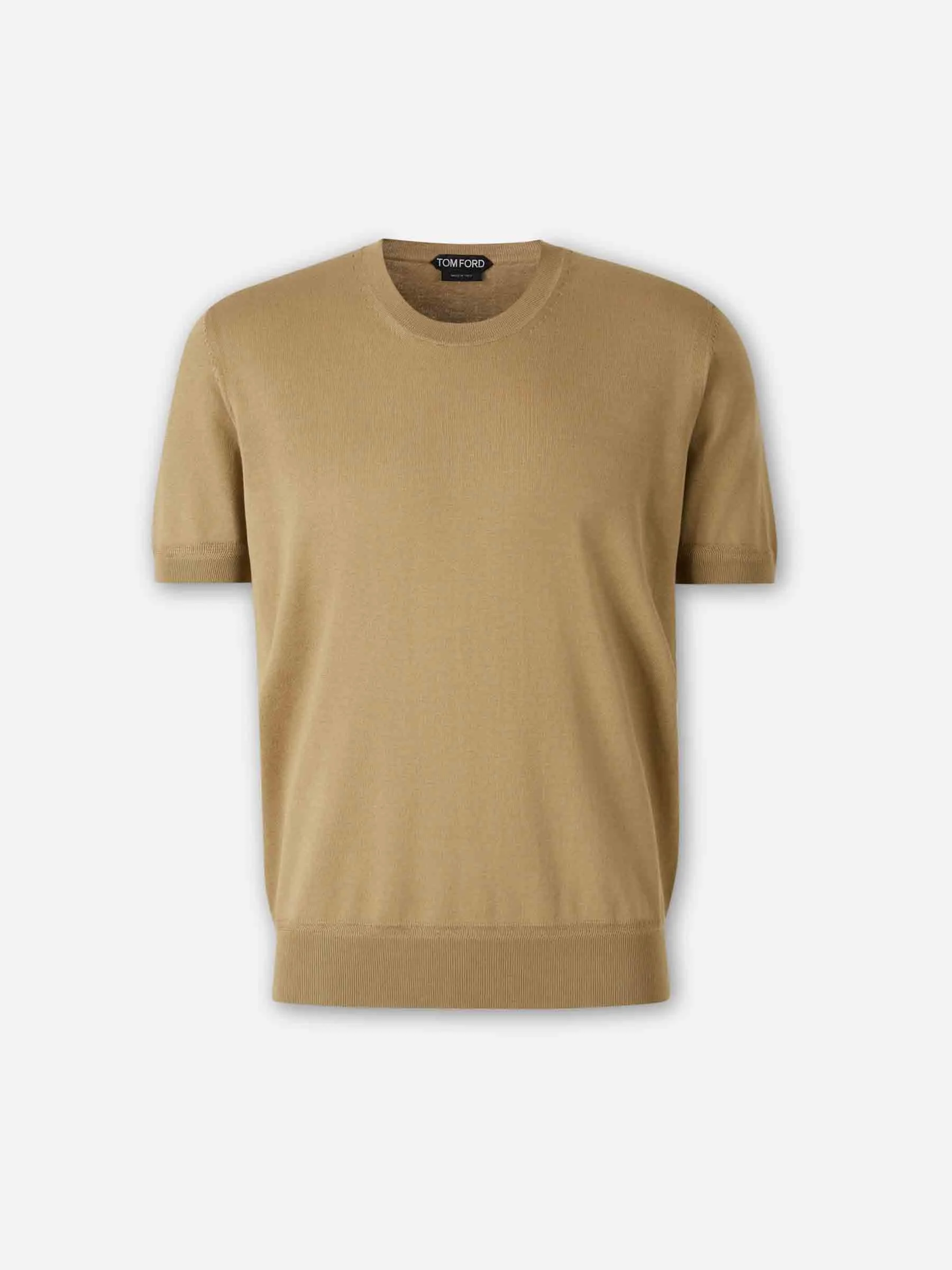 SKU: 553-004667 01 BRAND ID: KCS026-YMC040 T-shirt By Tom Ford • Ribbed finish at the collar, cuffs and hem • Plain knit • Made in cotton knit • Short sleeve T-shirt • Round neck • Composition: 100% cotton • Made in: Italy