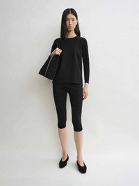 SKU: 762-000513 01 BRAND ID: 252-WRB0276-YA0187 Pants by Toteme • Made in compact knit • Mid waist • Small slits at side hem Made in China Length: 69 cm 53% viscose, 45% recycled polyamide, 2% elastane