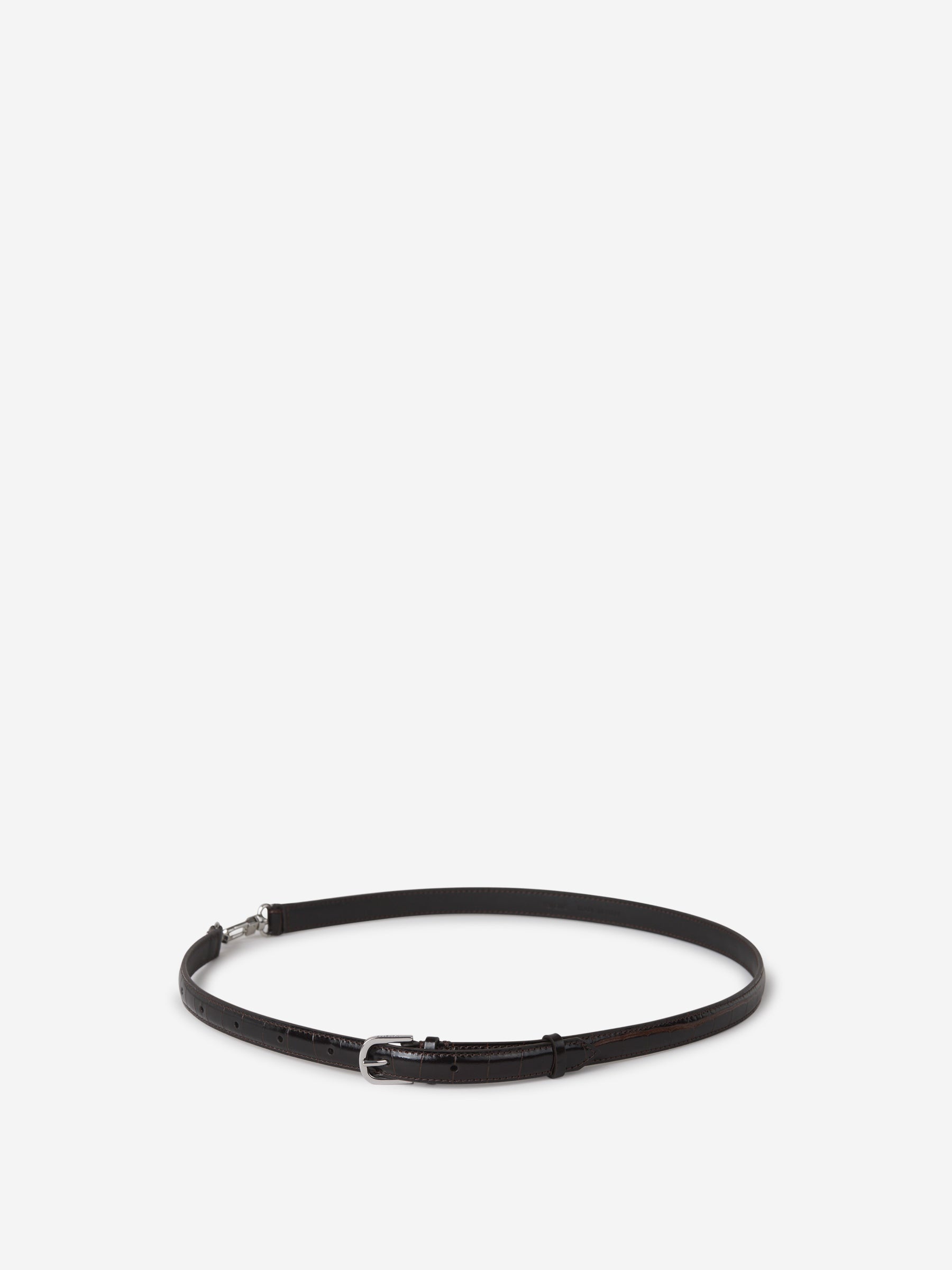 SKU: 830-000339 01 BRAND ID: 234-WLGBT152-LE0023 Belt by Toteme • Croco-effect embossed leather • Double closure • Oval buckle • Silver metal buckle • Width: 2 cm Made in Italia 100% Cowhide