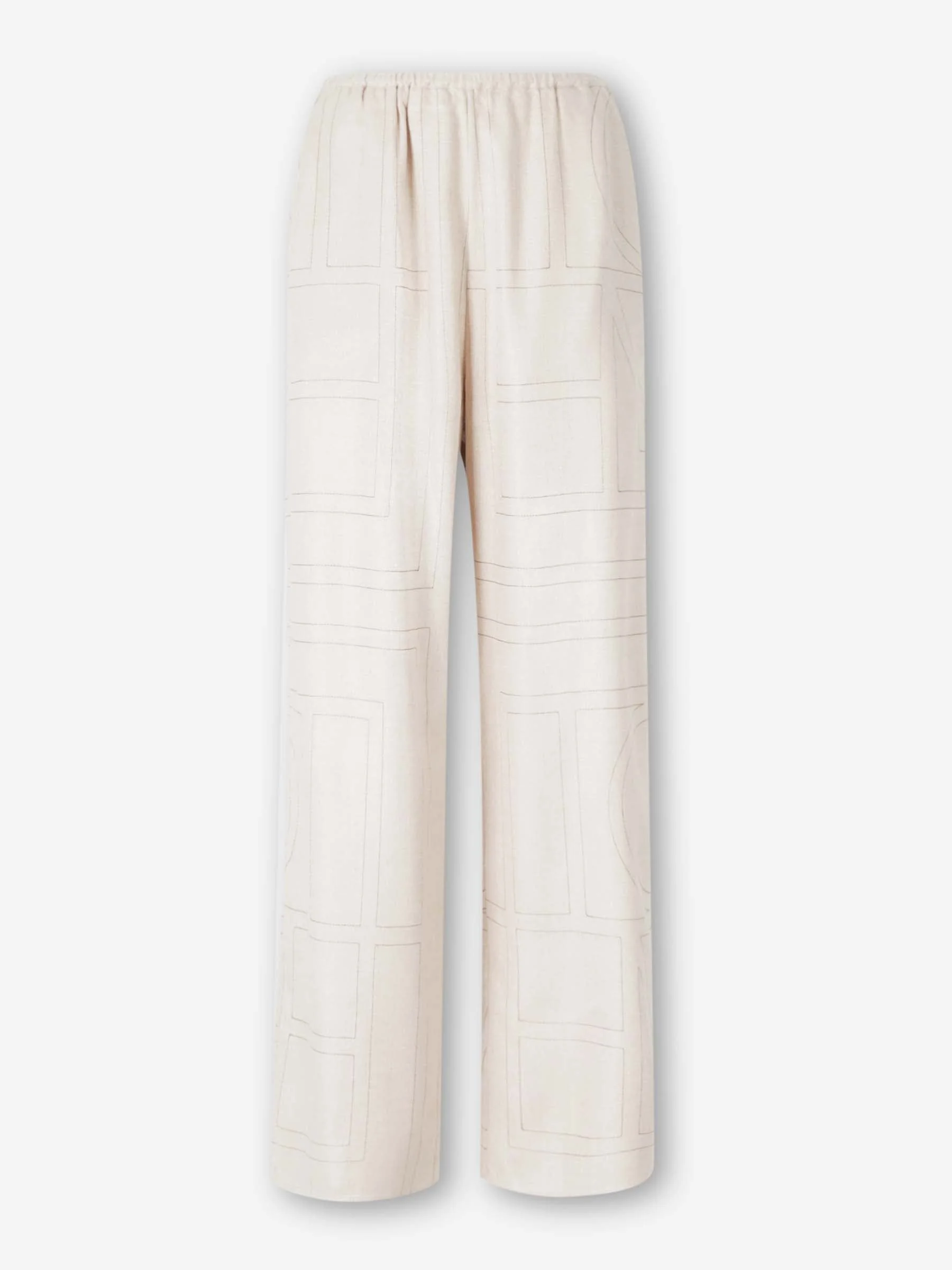 SKU: 761-004014 01 BRAND ID: 241-WRB1101-FB0080 Joggers Monogram Stitches Pants By TOTEME • Front pockets • Elastic waistband • Loose fit that provides comfort and style. • Made of modal twill • Straight leg Composition: 100% modal China