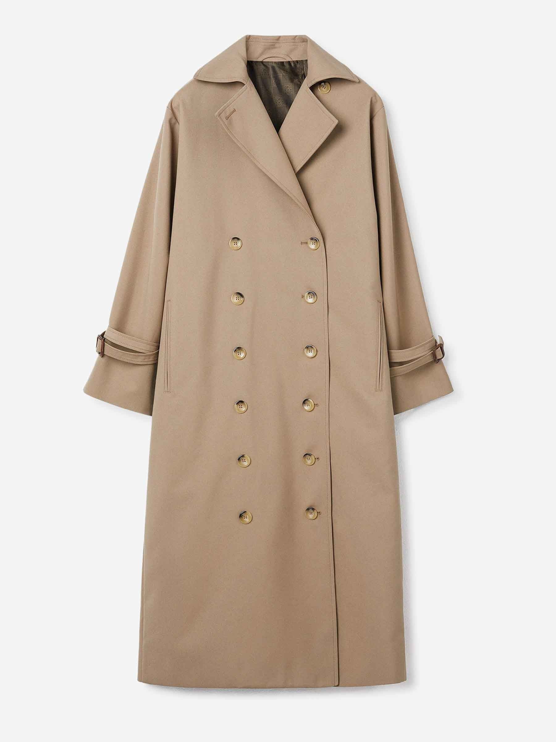 SKU: 773-000264 01 BRAND ID: 243-WRO1112-FB0243 Long Signature Gabardine Type of article By TOTEME • Two side pockets • Satin lining with brown monogram print • Made from durable and waterproof cotton blend gabardine • adjustable cuffs with leather buckle • Cross front closure with horn buttons • Gabardine collar 75% organic polyester, 25% recycled polyester Italy