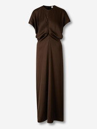 SKU: 721-000581 01 BRAND ID: 241-WRD1103-FB0020 Midi Satin Dress Dress By TOTEME • Draped waist • Short sleeve and round neck • Regular fit • Made of fluid crepe with a shiny satin reverse • Hidden zipper closure at the back Composition: 100% viscose China