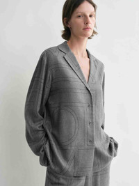 Monogram flannel pj top smoke melange