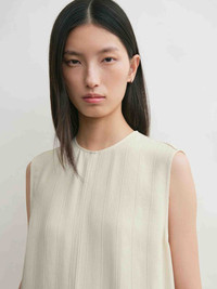 SKU: 702-000479 01 BRAND ID: 252-WRT0508-FB0192 Blouse by TOTEME • Crafted from a viscose blend with a touch of crisp linen • Slits at side hems • Without sleeves • Back zip fastening Made in China 96% viscose, 4% linen