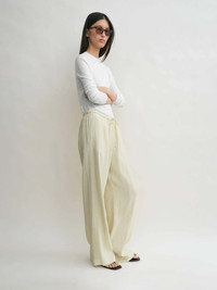 SKU: 761-003772 01 BRAND ID: 252-WRB1709-FB0192 Pants by Toteme • Wide leg • Mid waist • Made of viscose and linen fabric • Tonal logo embroidered on back pockets • Elastic waist with drawstring • Two side pockets • Two back pockets Made in China Length: 106 cm 96% viscose, 4% linen