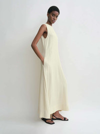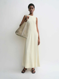 SKU: 721-000469 01 BRAND ID: 252-WRD0182-FB0192 Dress by TOTEME • Made of viscose and linen fabric • Cuello redondo • Sin mangas • Cierre mediante cremallera oculta posterior • Side pockets Made in China Length: 132 cm 96% viscose, 4% linen