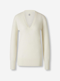 SKU: 711-003355 01 BRAND ID: 252-WRT0521-YA0016 V-Neck Sweater Sweater By TOTEME • Ribbed finishes on the cuffs, collar and hem • Regular fit • Plain knit • Made in cashmere knit • Features a design without closure for a minimalist style • Deep V-neck Composition: 100% cashmere Italy