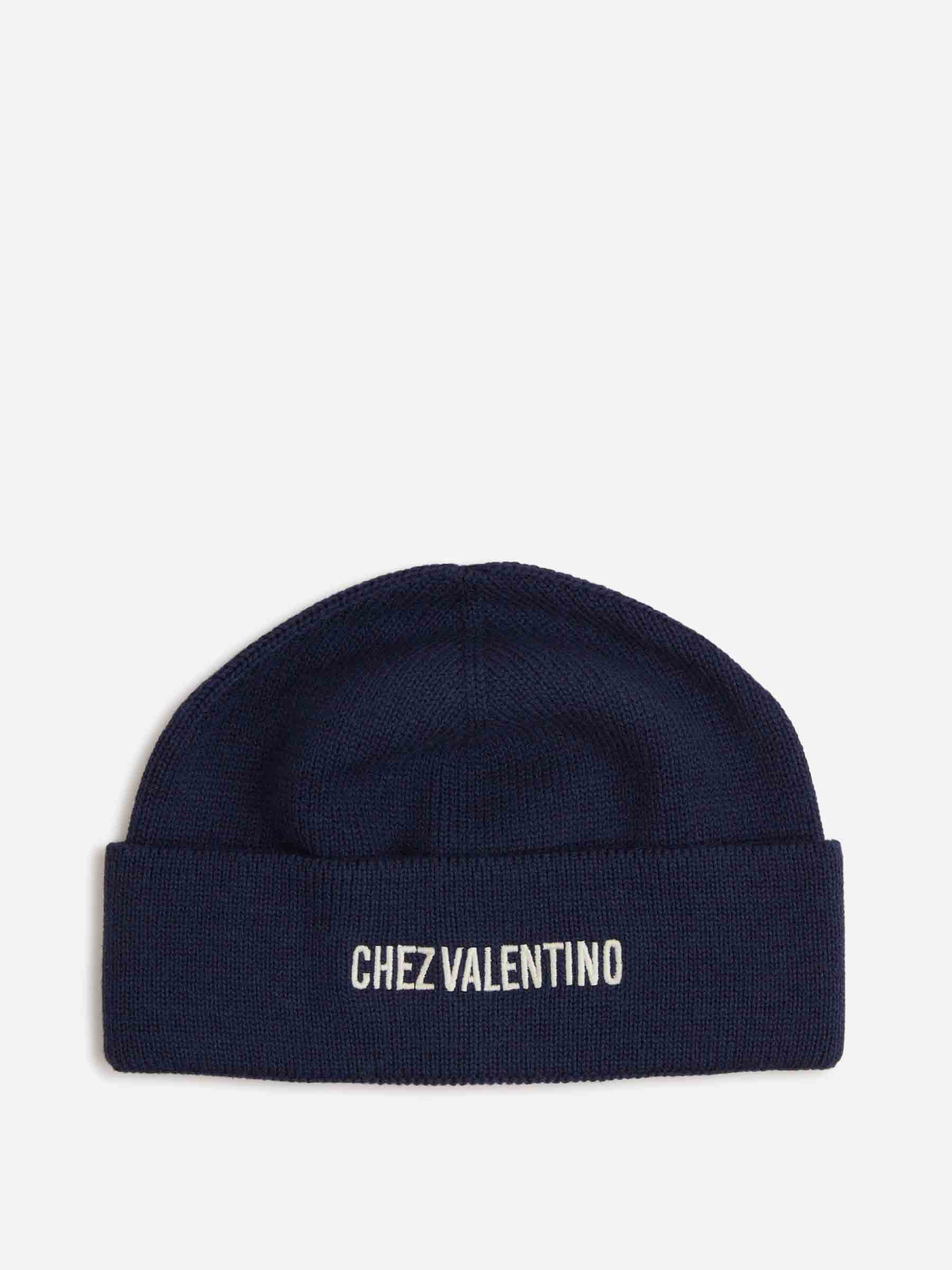 SKU: 689-000005 02 BRAND ID: 7Y2HB02RFZL Gorro Punto Logo Gorro Valentino Garavani • Dobladillo acanalado con bordado "Chez Valentino" • Confeccionado con punto de lana 100% lana virgen Italia
