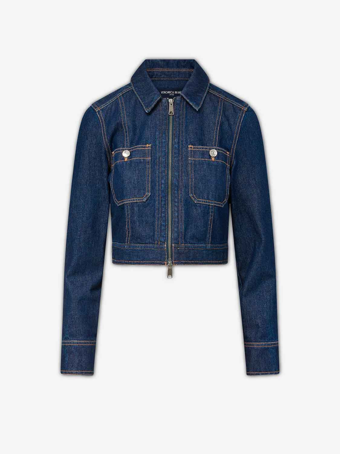 SKU: 772-001476 01 BRAND ID: J25071680056ID Cropped Denim Jacket Cropped Denim Jacket By Veronica Beard • Decorative pockets on the front • Details of decorative stitching and cropped cut • Made in cotton twill • Cropped Denim Jacket • Front zipper closure • Shirt collar Composition: 100% cotton Made in:
