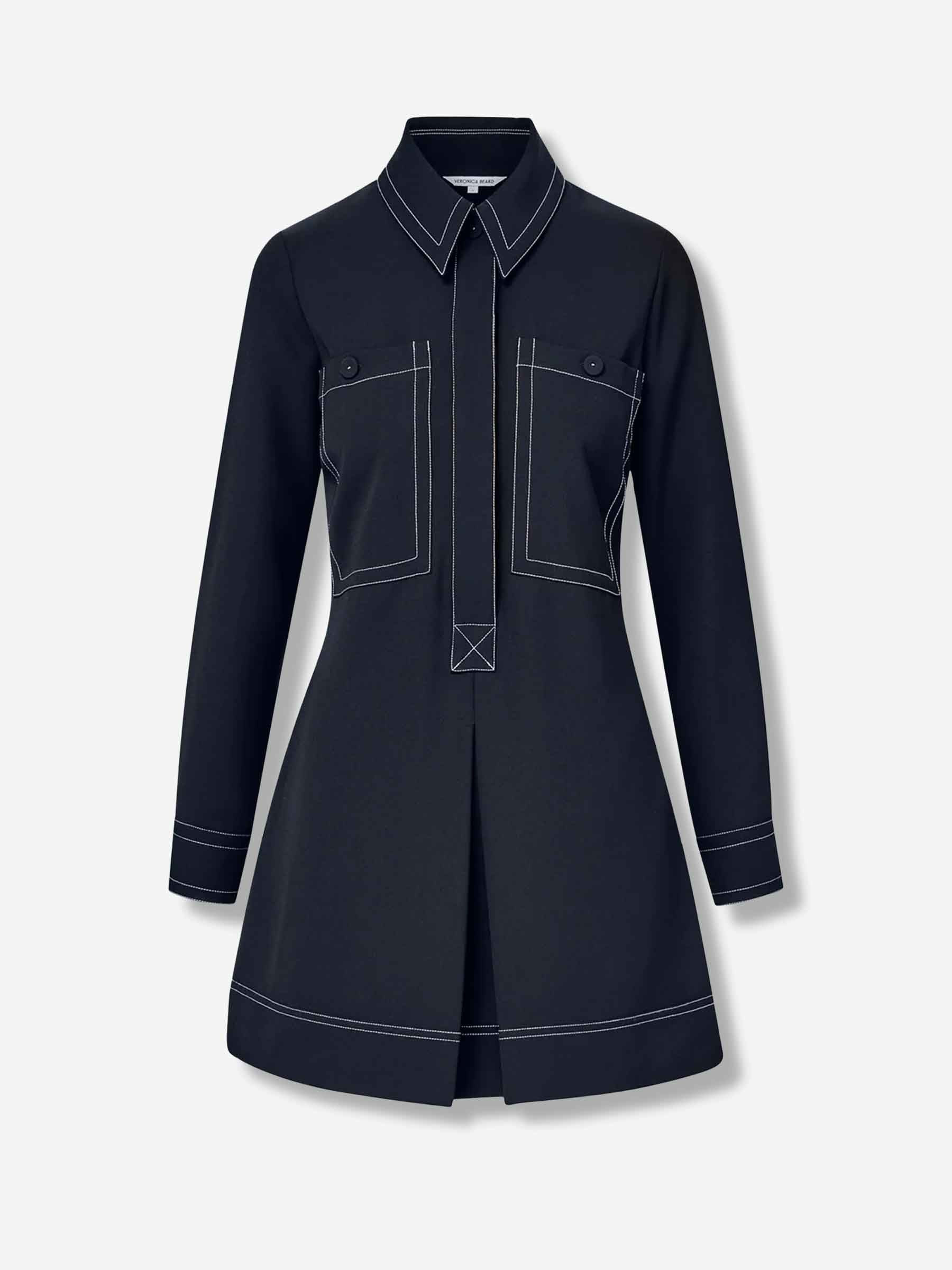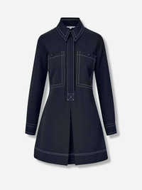 SKU: 731-006049 01 BRAND ID: 2507CP3221718 Mini Dress Pryce Mini dress By Veronica Beard • Front oversized patch pockets • Contrasting seams • Long sleeve • Loose A-line fit • Crafted in premium stretch crepe • Mini dress • Front hidden button closure Composition: 97% polyester, 3% elastane Made in: Italy