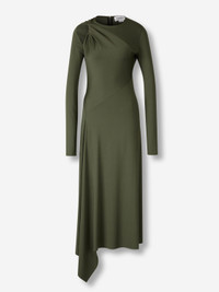 SKU: 721-000664 01 BRAND ID: 1425JDR006789A Draped Asymmetric Dress Midi dress By Victoria Beckham • Long sleeve • Defined waist with seams • Round neckline • Tailored fit • Crafted from high-quality wool • Midi dress • Invisible zipper at the back Composition: 90% Polyester, 10% Elastane Made in: United Kingdom