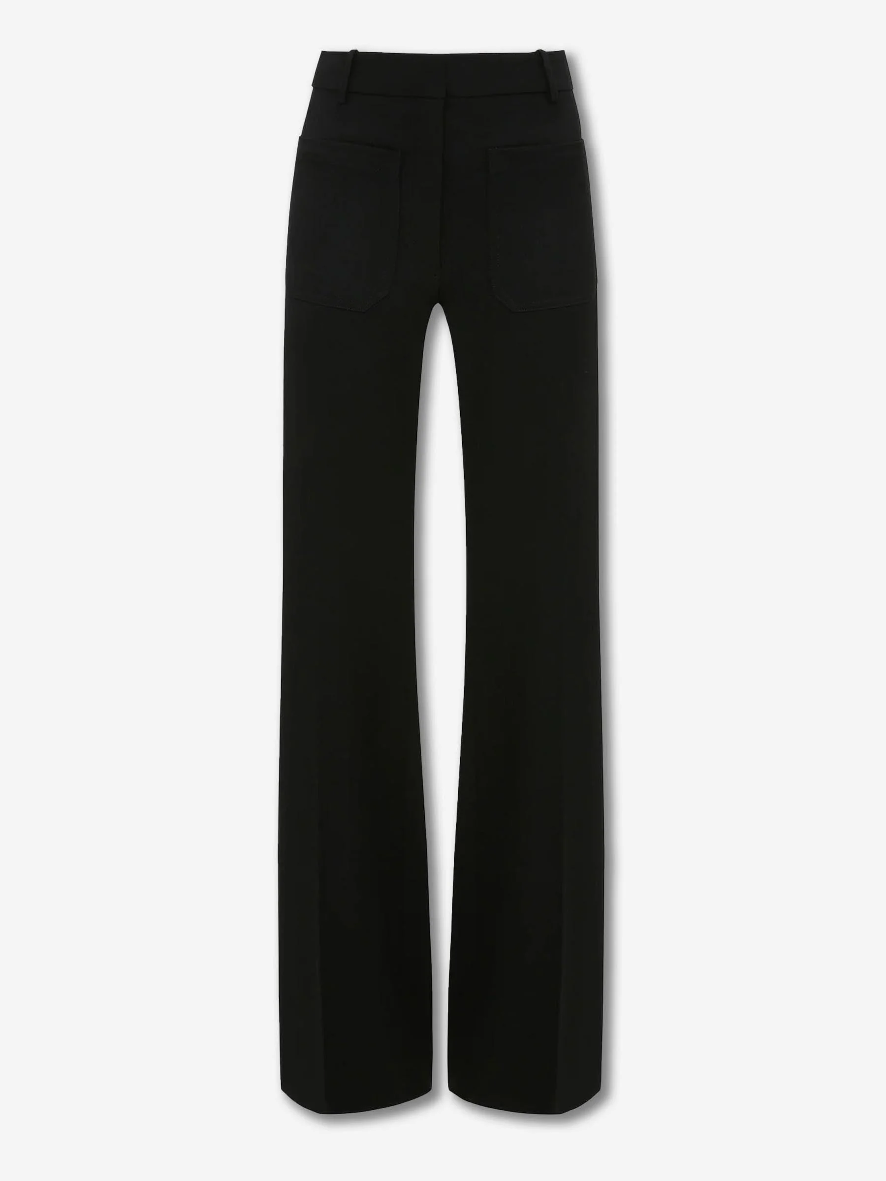 SKU: 761-004091 01 BRAND ID: 1124WTR005115A trousers By Victoria Beckham • Loose fit • Made from polyester and wool fabric • Button and zip closure • Two side and back patch pockets • Low bell-shaped • Composition: 55% polyester, 45% wool • Made in: Portugal