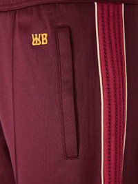 SKU: 521-003343 01 BRAND ID: MA25JE14-JE10 Casual Pants Casual Pants By Wales Bonner • Inclined side pockets and a zippered back pocket • Adjustable elastic waistband with drawstring. • Detail of visible seams on the sides, and embroidered logo details in color. • Relaxed and straight fit • Made from high-quality cotton • Casual Pants • Straight leg • Elastic waistband without front closure, adjustable with internal drawstring Composition: 55% Polyester, 45% cotton. Portugal