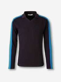 SKU: 551-000395 01 BRAND ID: MA25JE29-JE08 Long Sleeve By Wales Bonner • Ribbed finishes at the cuffs and hem for a snug fit • Colored trims • Regular fit • Ribbed knit • Made from lyocell, cotton and elastane knit • Long sleeve • Open polo collar • Composition: 64% lyocell, 32% cotton 4% elastane • Made in: Portugal