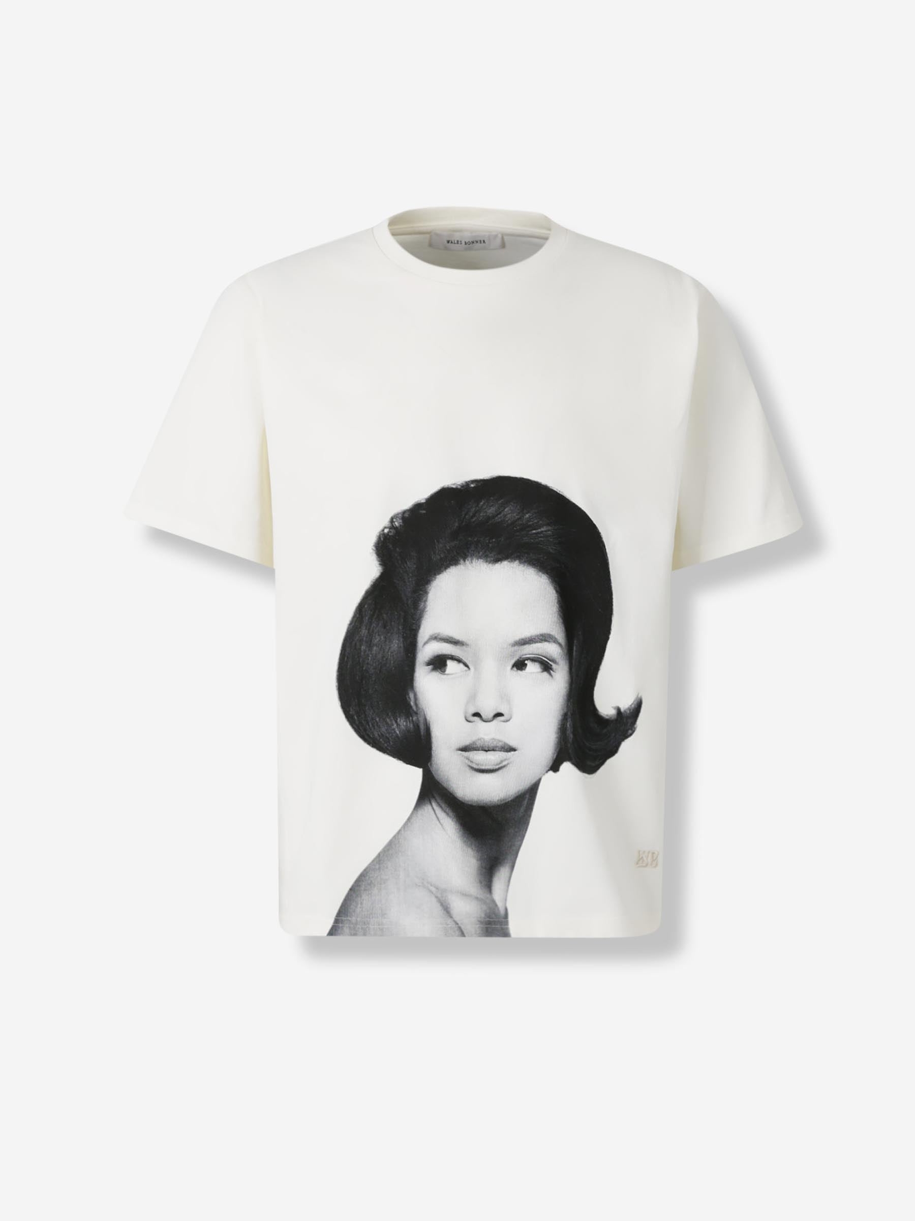 SKU: 553-004323 01 BRAND ID: UA25JE29-JE01 Round Neck T-shirt T-shirt By Wales Bonner • Ribbed finishes • Regular fit • Front print • Crafted in cotton fabric • Short sleeve T-shirt • Round neck Composition: 100% cotton Made in: Portugal
