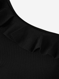 SKU: 703-002542 01 BRAND ID: 4397TSS251 Top By Zimmermann • Relaxed fit that enhances comfort • Ruffle detail at the neckline • Crafted in ribbed knit • Asymmetric neckline • Composition: 76% viscose, 21% polyamide, 3% elastane. • Made in: Australia