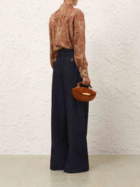SKU: 761-003913 01 BRAND ID: 6174PF251 Tailored Flared Jeans Tailored Flared Jeans By Zimmermann • Two discreet side pockets • High waist with belt loops • Fitted at the waist with a flowing drop to the hem • Crafted from a cotton blend • Tailored Flared Jeans • Flared hem that adds movement and style • Hidden zipper closure and button at the waist Composition: 75% cotton 25% viscose Made in: Australia
